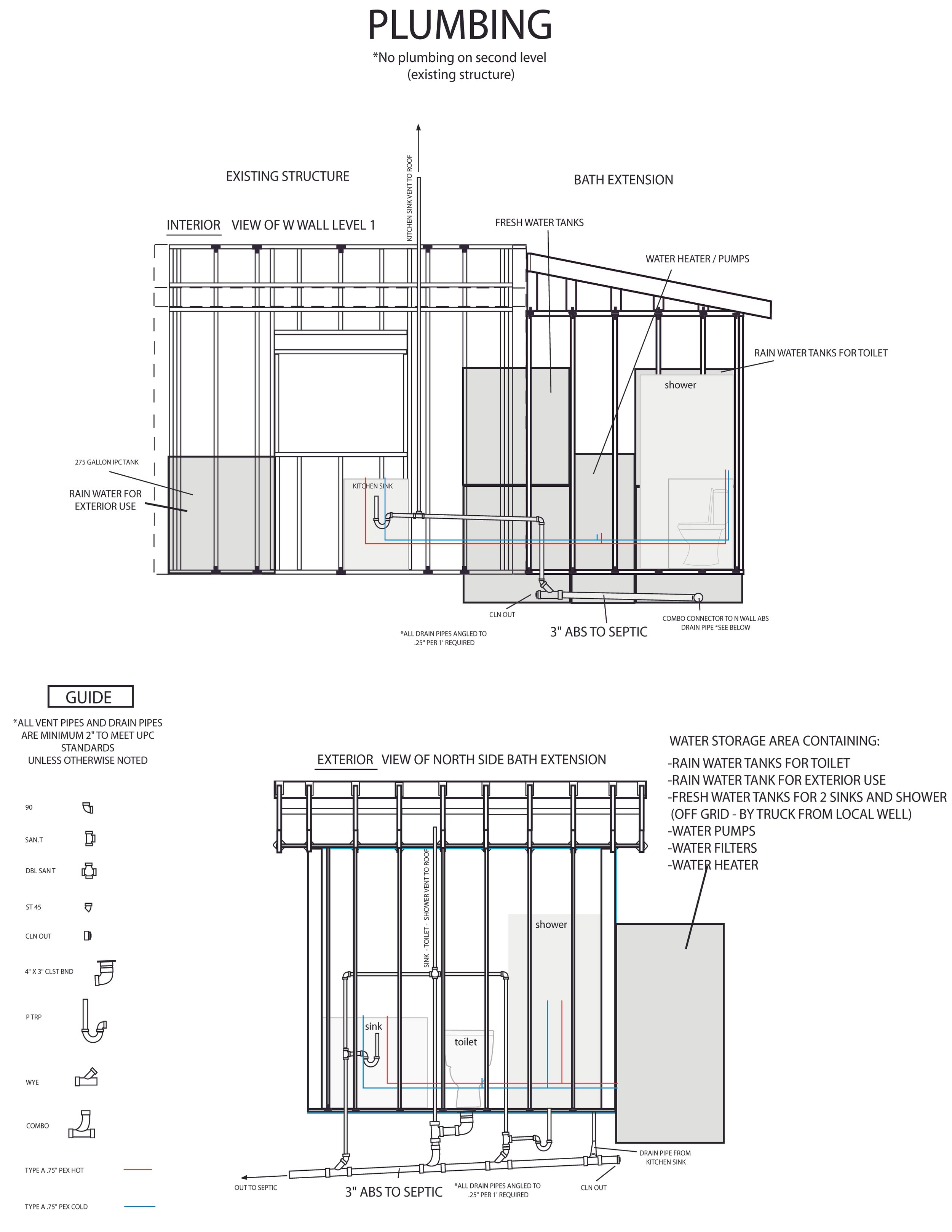 Plumbing layout for tiny home