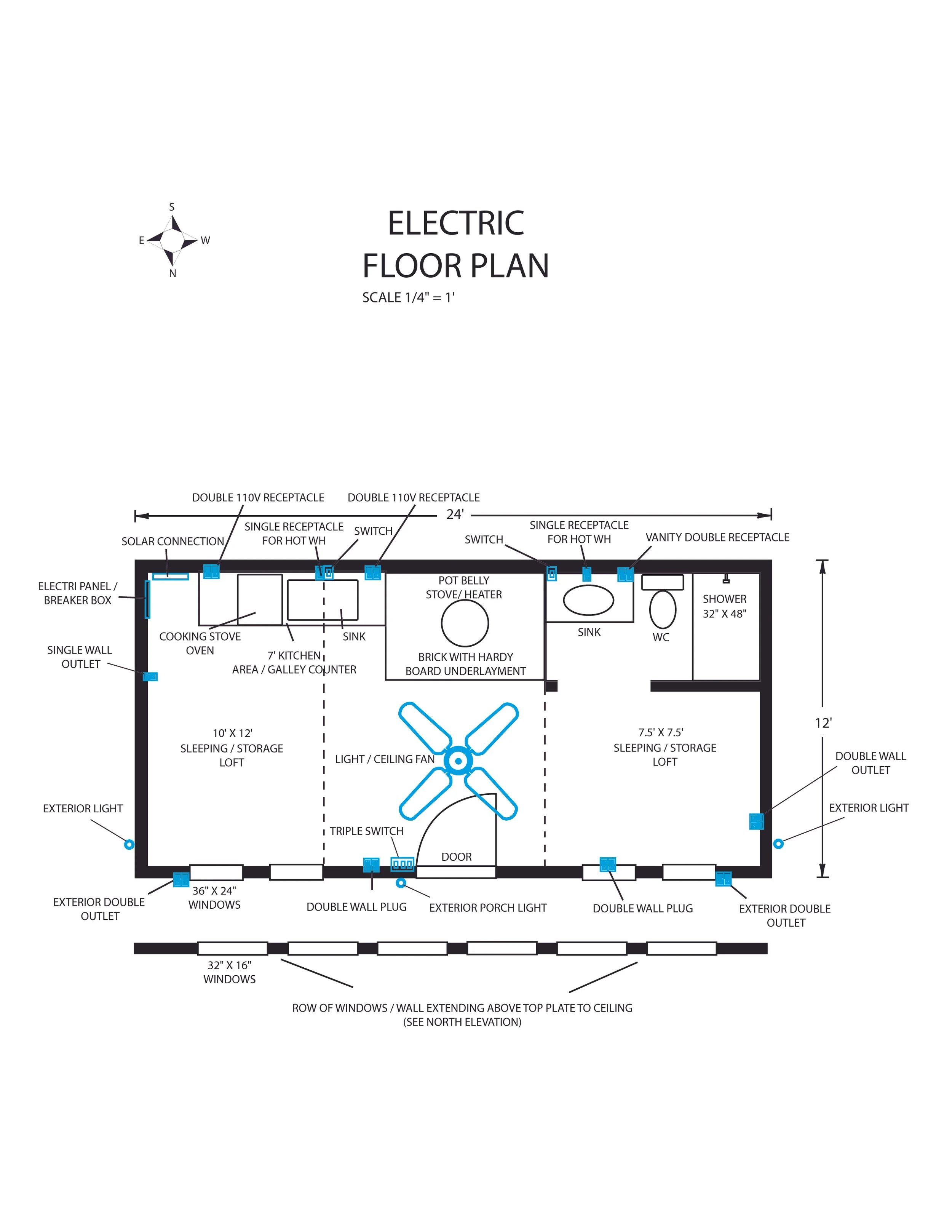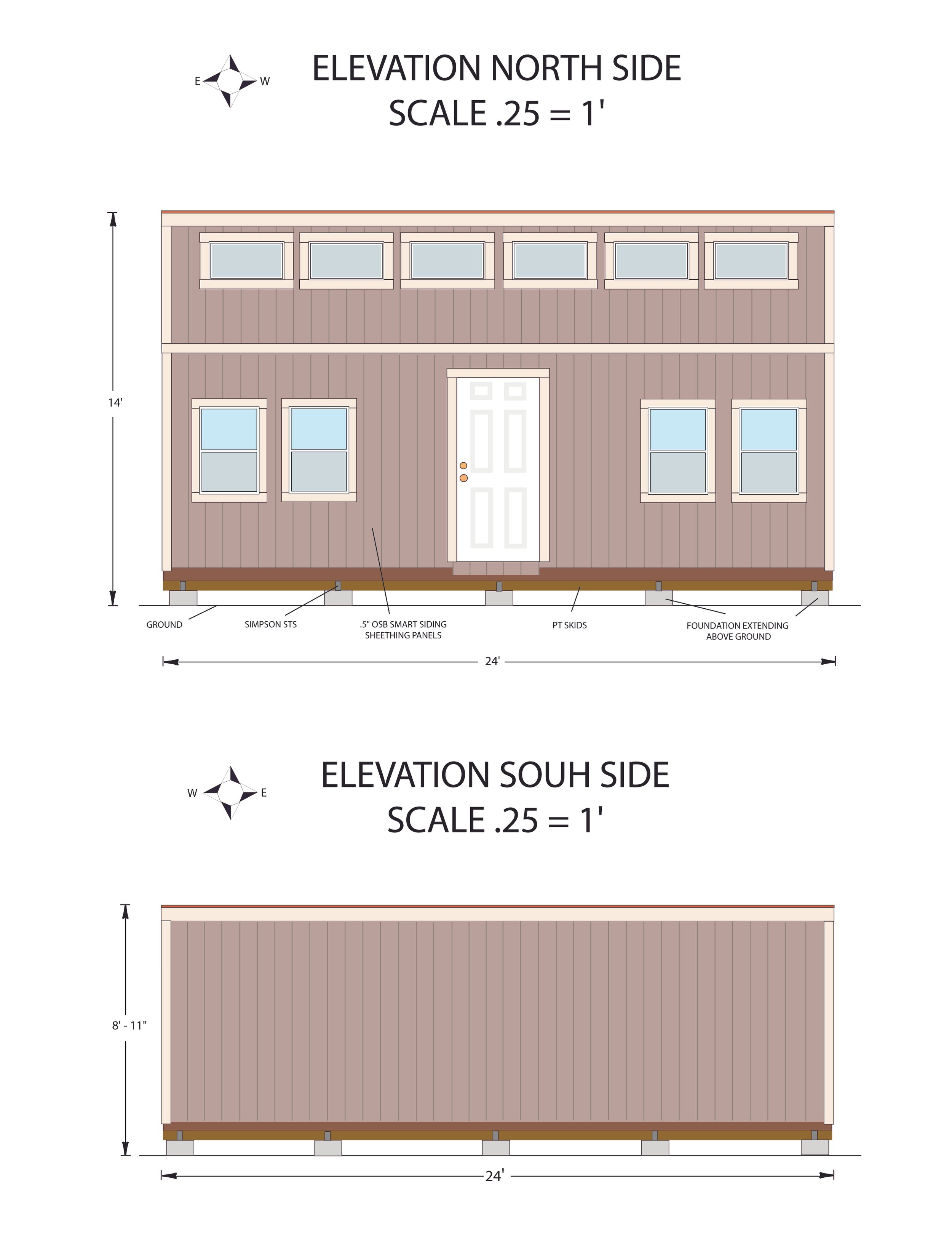 Structural drawing of North and South walls for a tiny home